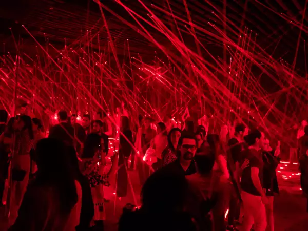 Desde el momento en que los visitantes ingresan a la instalación son transportados a un mundo de oscuridad interrumpida solo por una lluvia de luces láser que transforma el lugar en un espectáculo visual y auditivo. El entorno creado por esta instalación inmersiva despierta los sentidos y lleva a los espectadores a explorar nuevas dimensiones del arte y la percepción.