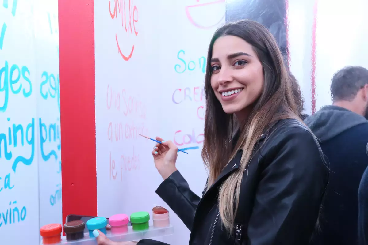Al llegar al evento había dos entradas con experiencias totalmente diferentes. Por un lado, Luminous White Carbón Activado ofrecía a los invitados un kit de pinturas y brochas para plasmar un mensaje positivo en las paredes del laberinto blanco por el que debían pasar. “El amor dibuja tu mejor sonrisa” o “la pasión lo cambia todo”, eran parte de la inspiración que decoraba ese espacio.