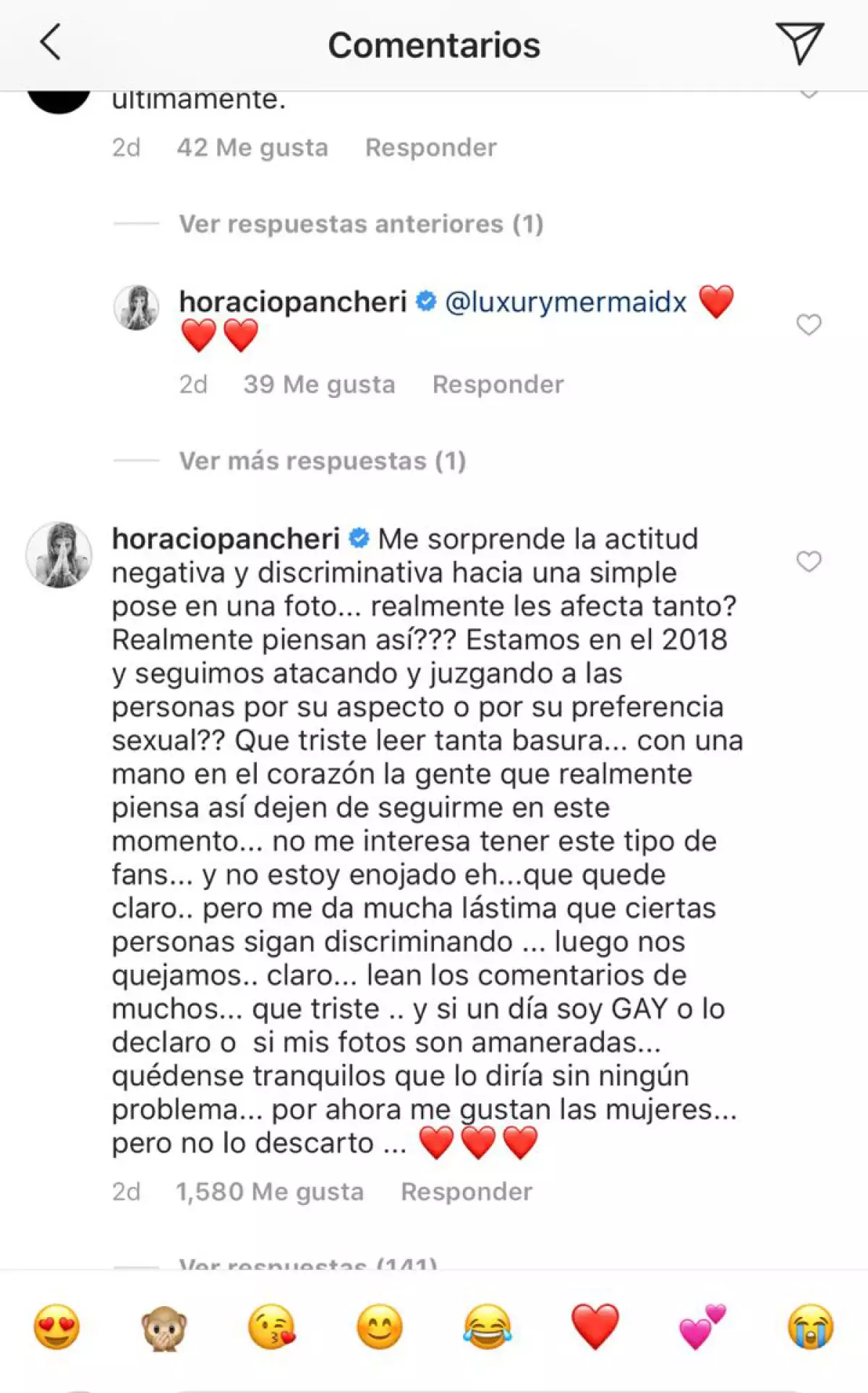 Horacio Pancheri no se guardó su sentir acerca de los comentarios que recibió de algunos seguidores que calificaron como afeminadas algunas de sus fotos en Instagram.
