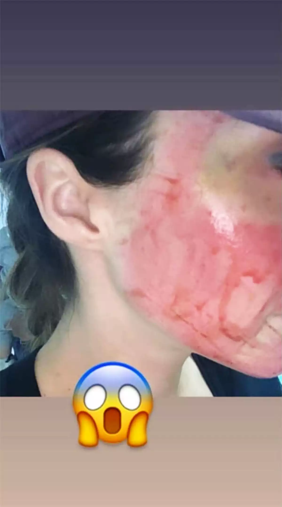 Posteriormente, la actriz compartió otra imagen en donde se ve de perfil parte de su pómulo y mejilla totalmente rojos y cubiertos con un poco de sangre.
