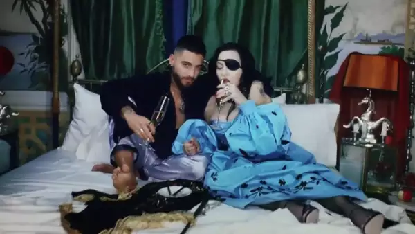Sin duda una de las escenas que más llama la atención es cuando ambos cantantes se encuentran en la cama. Ella viste un vestido color azul y el un pijama look de seda. Los dos intérpretes tienen entre sus manos una copa de champagne y en una de las secuencias, la Reina del Pop lame los pies del Colombiano.