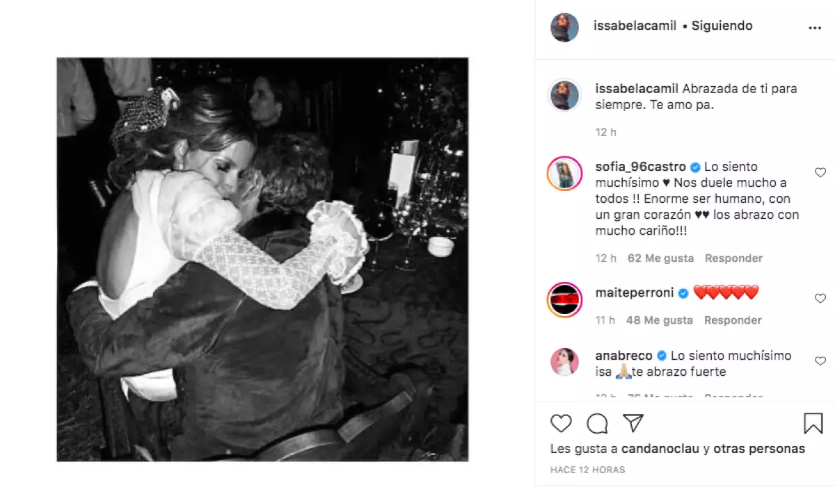 Issabela Camil , como el resto de la familia, está pasando un momento muy triste y difícil, luego de que este domingo 6 de diciembre falleciera el empresario Jaime Camil Garza debido a un virus que entró por la vesícula.