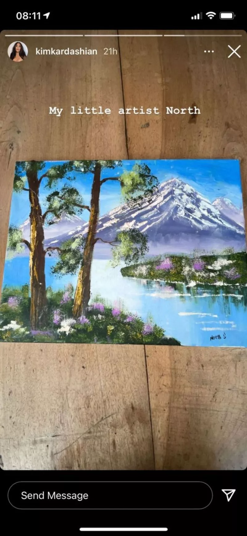 Aunque algunos seguidores todavía dudan de la autenticidad, para molestia de su mediática mamá, de ese maravilloso paisaje al óleo que pintó recientemente la pequeña North West, hija mayor de Kim Kardashian y Kanye West, lo cierto es que la niña de siete años acaba de ver recompensado su esfuerzo y su talento con una invitación personal para que disfrute de una entretenida y educativa jornada en el museo del prestigioso artista Bob Ross, quien se hizo especialmente famoso gracias al programa de arte que presentaba en la televisión estadounidense, antes de su temprana muerte en 1995.