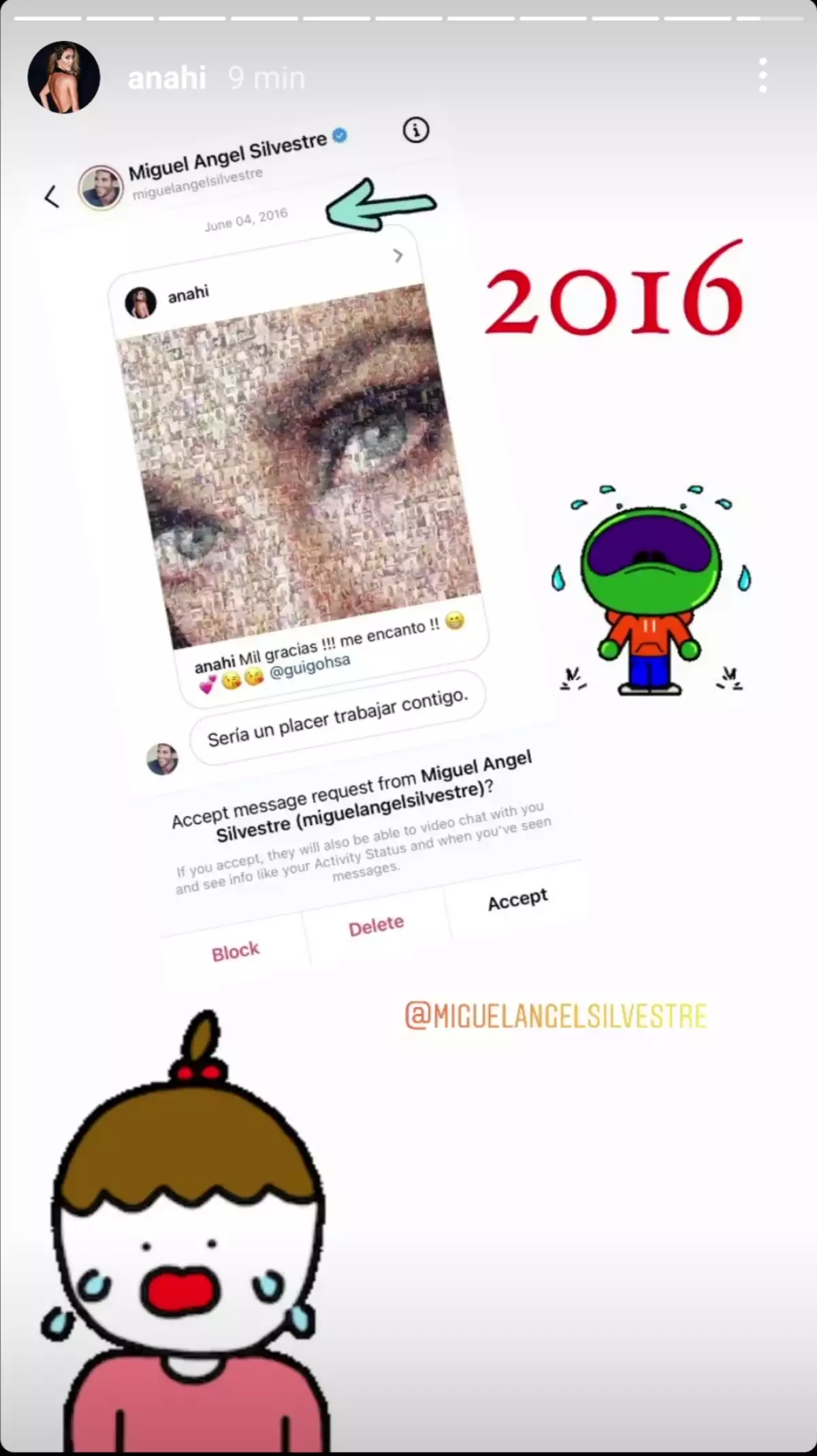 Anahí usó sus historias de Instagram para confesar su arrepentimiento por no haber contestado los mensajes que en su momento le envió Miguel Ángel Silvestre.