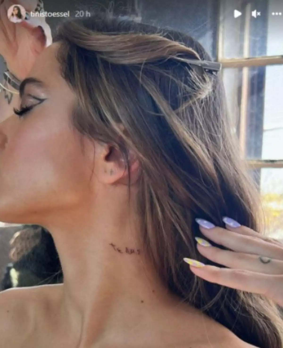 La cantante Tini Stoessel tiene varios tatuajes repartidos por todo el cuerpo y ahora acaba de agregar otro más a su colección en un lugar tan visible como el cuello, donde se grabó la expresión Te amo escrita a mano por una persona muy importante para ella.