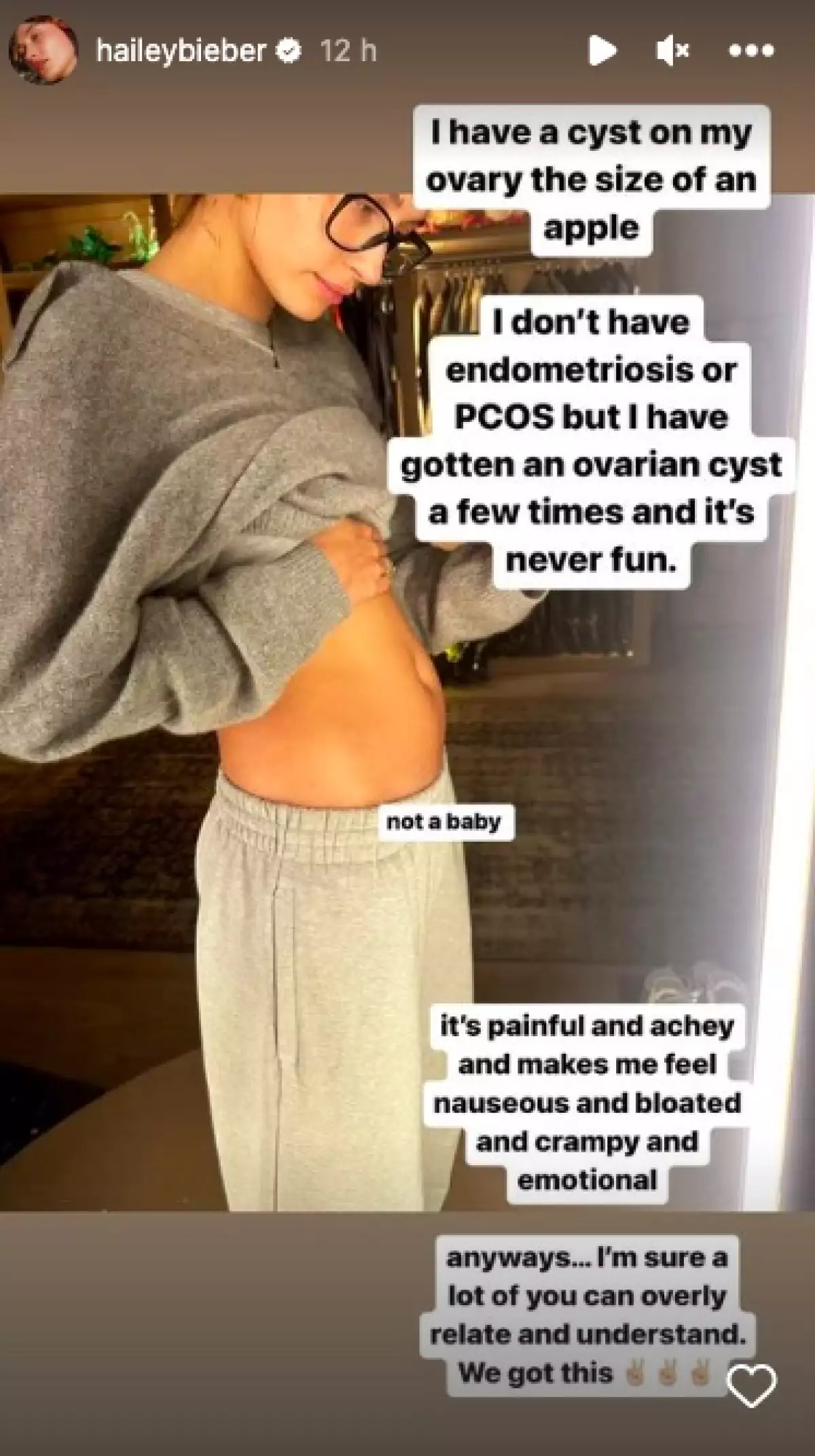 "He tenido un quiste en el ovario varias veces y no es agradable. Es doloroso y molesto. Me hace sentir hinchada y me produce náuseas. Me provoca calambres y estoy muy sensible", añadió para describir los síntomas, justo antes de sentenciar: "En cualquier caso, estoy segura de que muchas de ustedes lo entienden y se sienten identificadas. Podemos con esto".