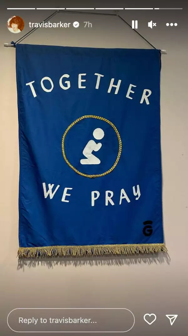 Poco después del anuncio de la banda sobre la cancelación de sus conciertos en Escocia, Travis Barker generó preocupaciones al compartir una imagen a través de sus Stories de Instagram en la que se aprecia un cartel con la frase: “Juntos oramos”