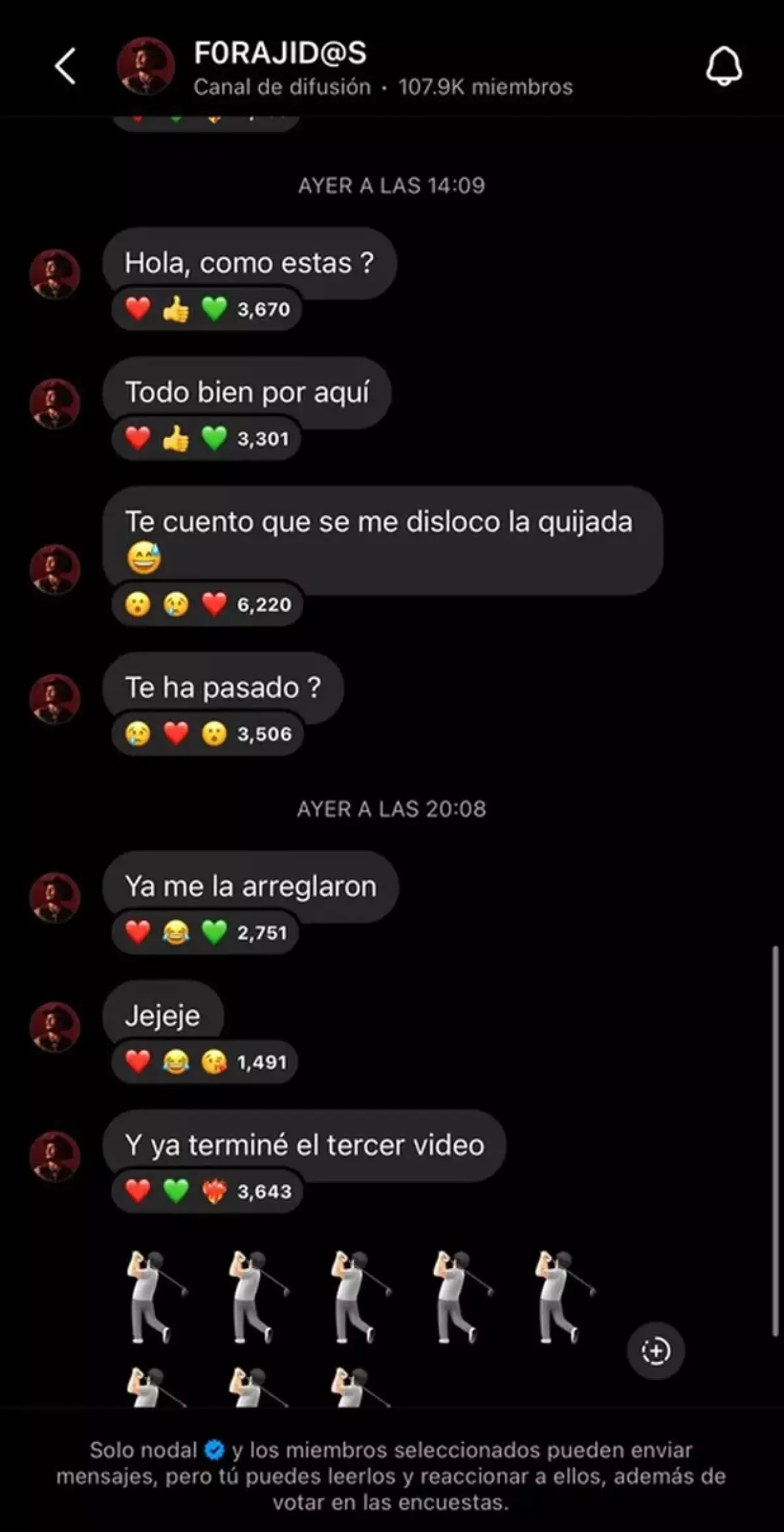 A través de su canal de difusión de Instagra, el intérprete de Botella tas botella, le reveló a sus fans que se había dislocado la mandíbula, aunque eso sí, no dio más detalles al respecto o sobre cómo se lesionó de esta forma, algo que finalmente causó la preocupación de sus fans.