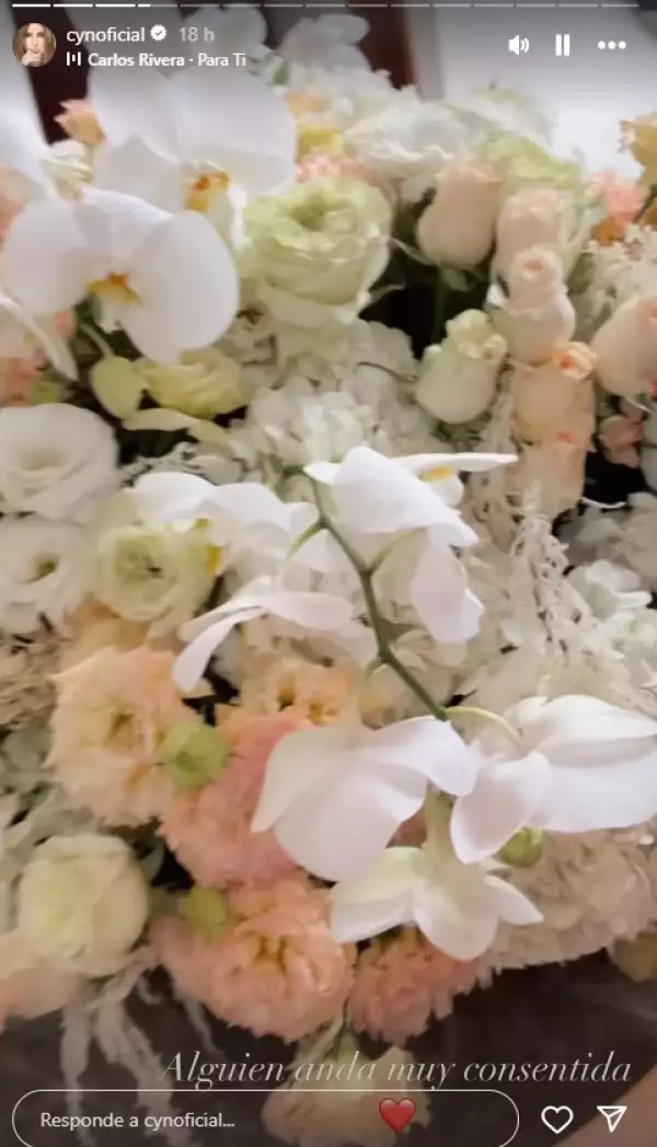 Aunque no reveló directamente quién se lo envió, la pista fue clara: el video venía acompañado de la canción Para ti. Además, la conductora escribió con un toque de humor y ternura: “Alguien anda muy consentida”, acompañado de un emoji de corazón.