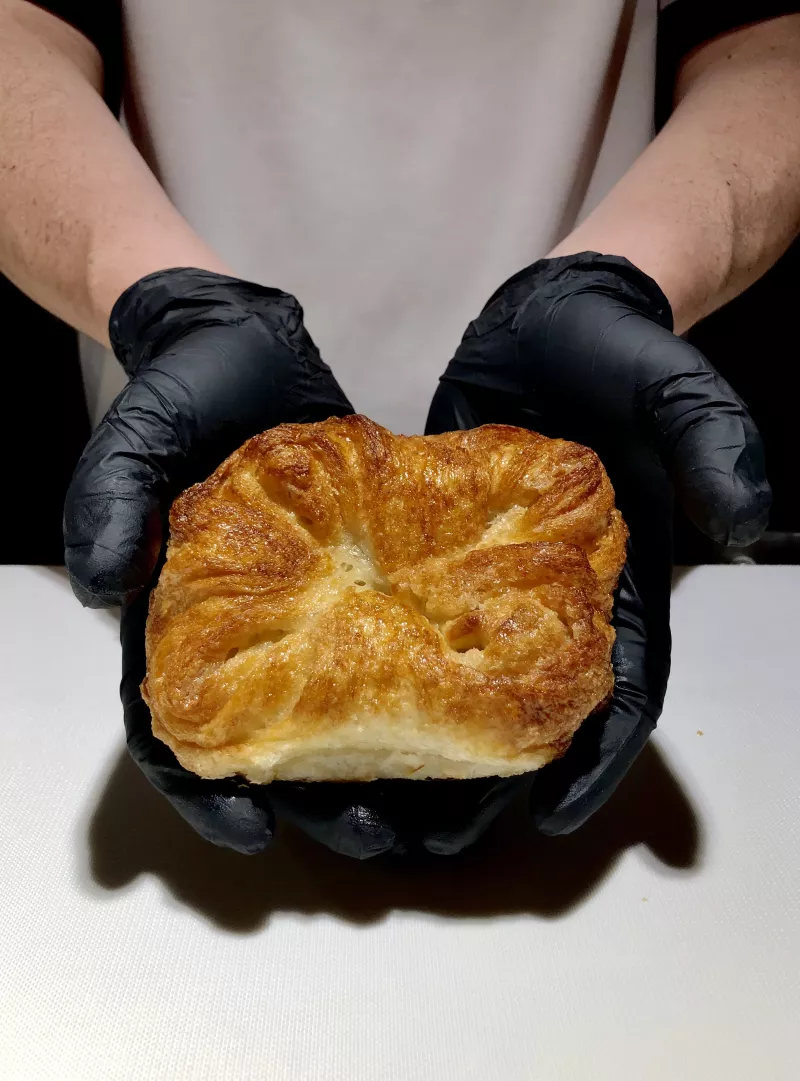 Once Panadería se fundó en 2018 cuando Ana Cano y Gustavo Ortega cerraron las puertas de su casa de tés ubicada en El Palacio de Hierro de Polanco y su vida se vió en pausa. “Abrir Once fue la forma de salir de una crisis y de reinventarnos después de los 50 años, queremos decirles que no hay edad para emprender, hoy estamos muy satisfechos con este logro", contaron. Este pan mágico denominado anushka es un laminado de masa muy fina de mantequilla y azúcar donde el ingrediente principal es el tiempo, pues la pareja aseguró que son necesarias más de seis horas de proceso artesanal para lograr el resultado que buscan: humedad de la masa y caramelización del azúcar para consentirte con un pan único, crujiente por fuera y suave por dentro.