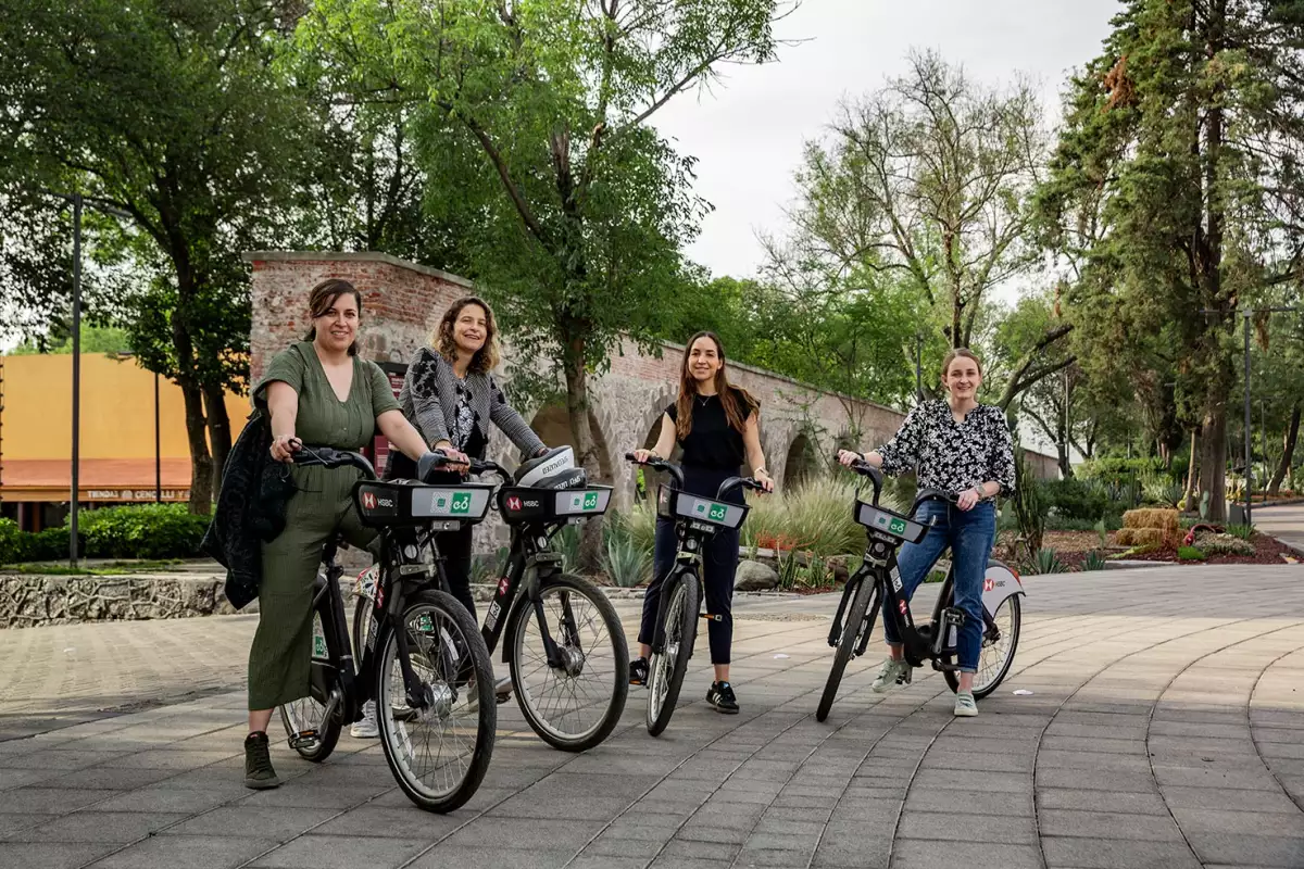 A bordo de bicicletas de ECOBICI, una de las formas más ecológicas, saludables, de mayor crecimiento y divertidas para recorrer la Ciudad de México, los invitados a esta experiencia se adentraron en el Bosque de Chapultepec para conocer más sobre su historia, siempre de la mano de la guía y experta en arte Alejandra Armendáriz quien estuvo con ellos en todo momento.