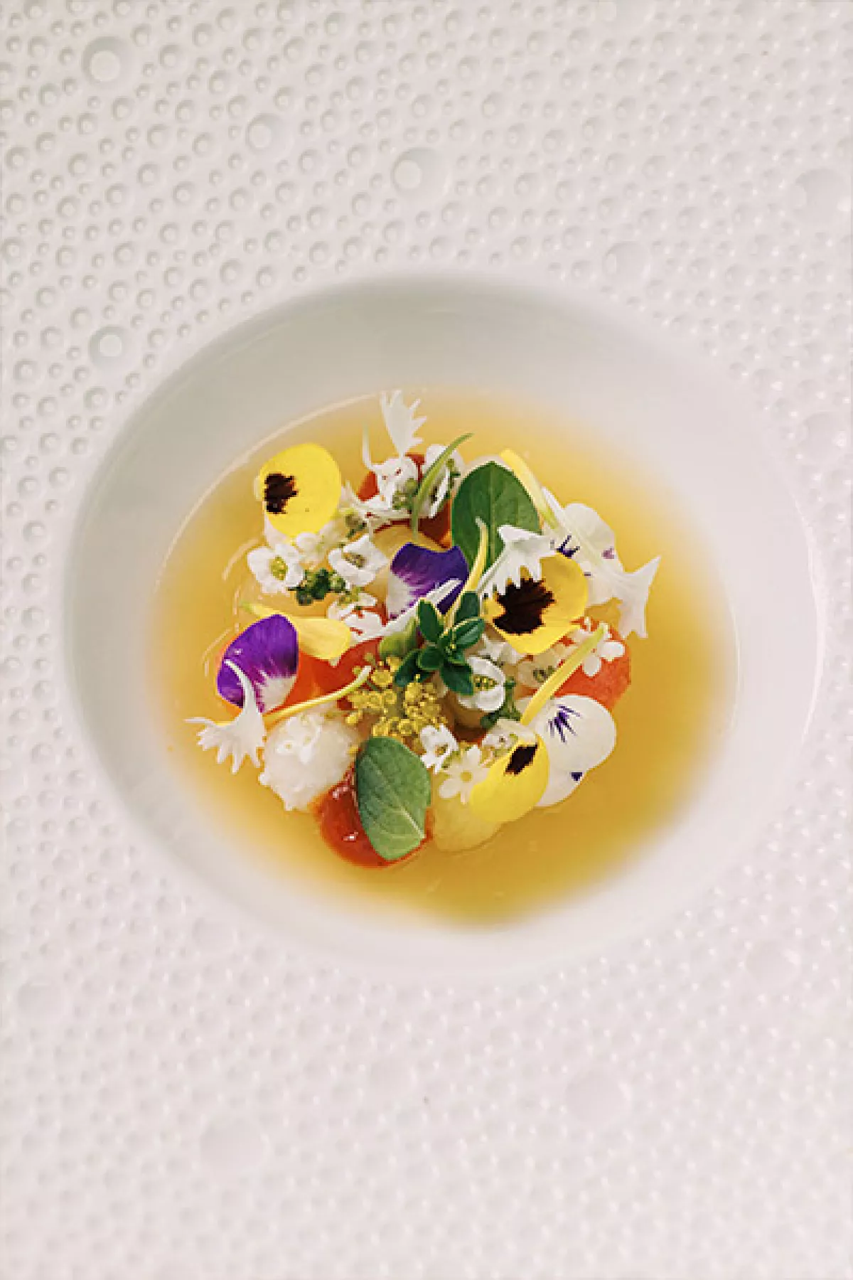 Su audaz visión y su pasión por la gastronomía se reflejan en el sofisticado menú, que incluye opciones como la Hoja de Quelites, el Mejillón Zarandeado, el Aguachile de Camarón, la Nieve de Coco y el Foie & Cacao.