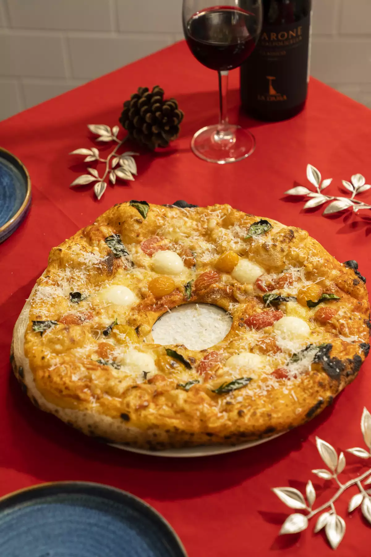 Esta innovadora versión de la tradicional rosca de Reyes combina la esencia de la pizza napolitana con el espíritu festivo y comunitario de la clásica tradición mexicana, ofreciendo una experiencia gastronómica única para compartir con familia o amigos.