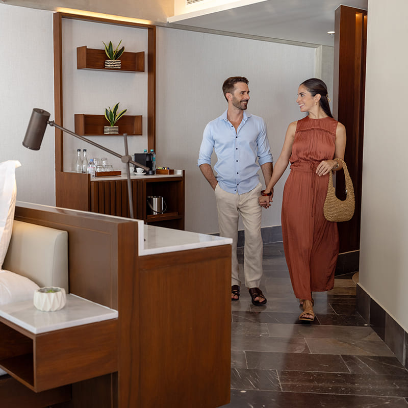 Sus habitaciones y suites están decoradas con una temática de minimalismo tropical. Refugios serenos con vista al mar, la laguna o exuberantes jardines, con texturas naturales y decoración artesanal que invita al descanso y la renovación. Para una experiencia más exclusiva, el Preferred Club ofrece suites swim-out, amplias terrazas privadas y amenidades como un lounge privado, Sky Bar en la azotea o la imperdible infinity pool.