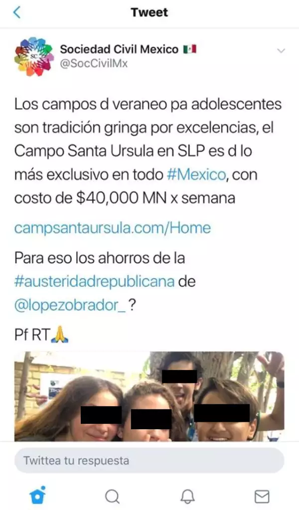 El medio digital Sin Embargo dio a conocer el sábado pasado que el hijo del presidente de México y su esposa, Beatriz Gutiérrez Müller , asistió como curso de verano al Camp Santa Úrsula en San Luis Potosí, el cual fue definido como un exclusivo sitio para que los niños pasen sus vacaciones.