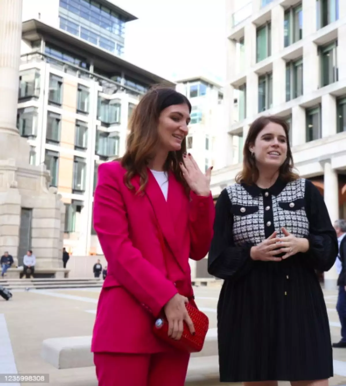 Al igual que Kate, la hija del príncipe Andrés y Sarah Ferguson también es partidaria de sacar el máximo partido posible a su guardarropa y en esta ocasión ha combinado el vestido en cuestión con un chaleco blanco y negro, que conseguía convertirlo en un atuendo completamente nuevo.